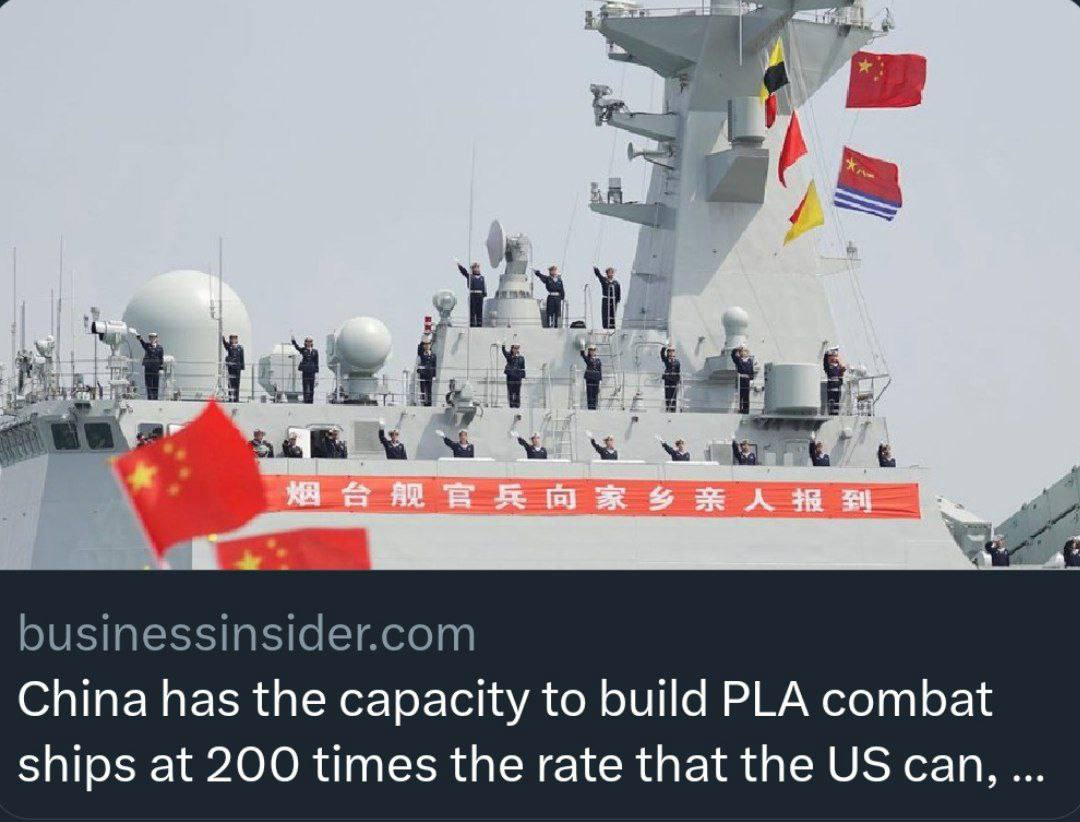 Theo tình báo hải quân Mỹ, năng lực sản xuất tàu chiến của Trung Quốc lớn gấp 200 lần so với Hải quân Mỹ.