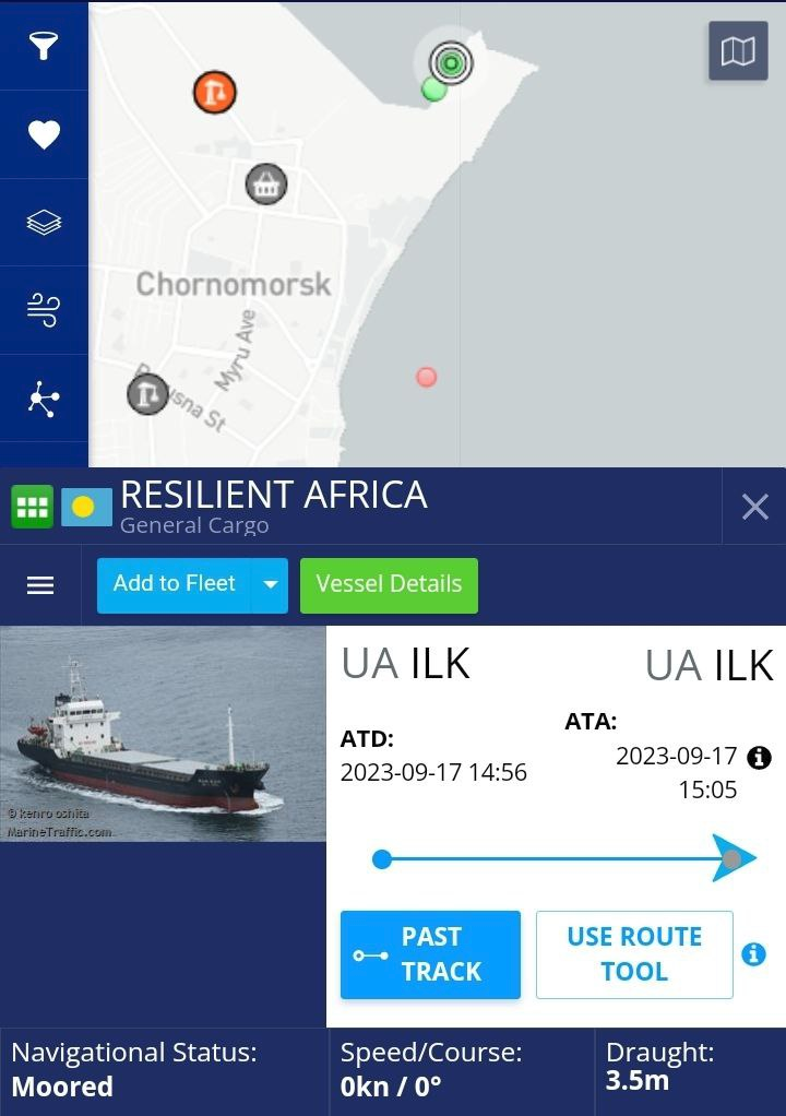 🇺🇦🇵🇼 Hiện tại, ngũ cốc đang được chất tại cảng Chornomorsk ở vùng Odessa của Ukraine lên hai con tàu - Resilient Africa và Aroyat, đi dưới lá cờ của Palau.