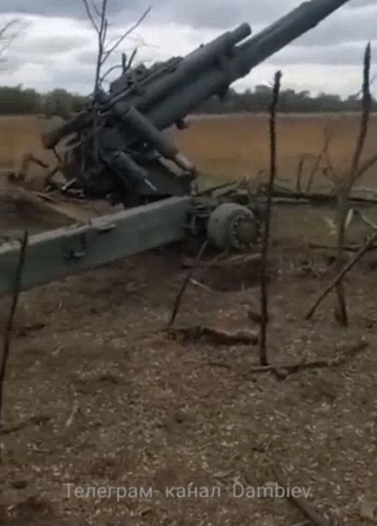 Hậu quả của sự tấn công của máy bay không người lái kamikaze "Lancet" trên pháo 152 mm "Msta-B" của Ukraine trong khu vực khu định cư Verbovo theo hướng Zaporozhye.