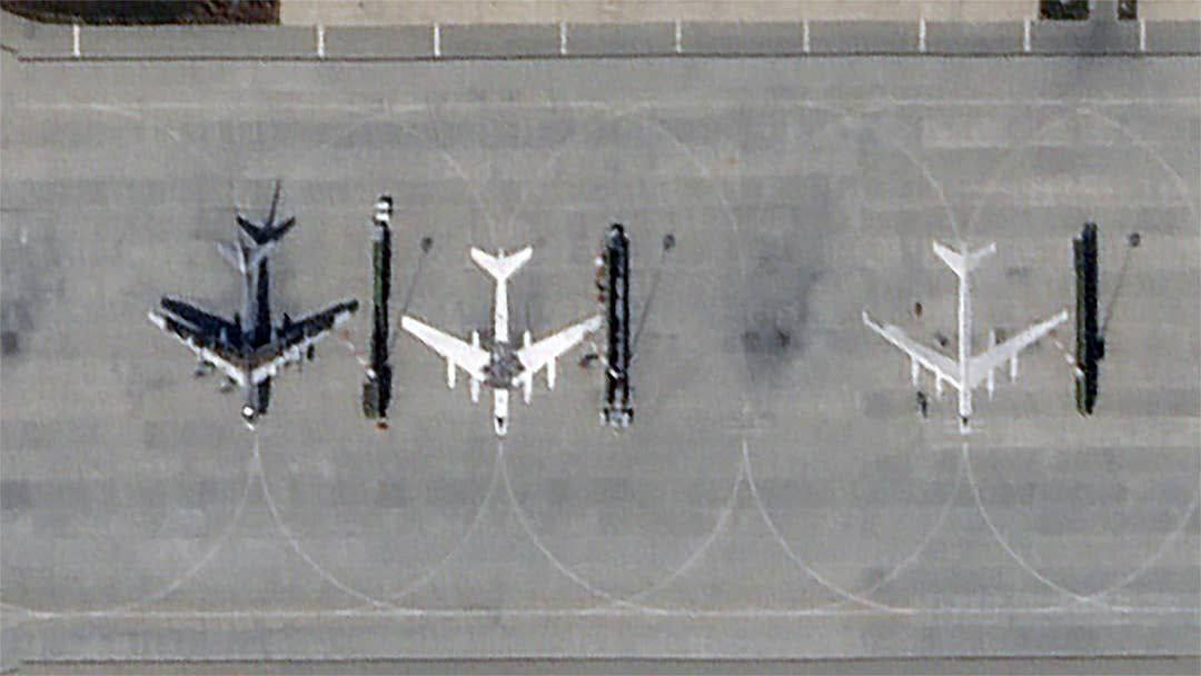 Và gần đó, trên các chỗ đỗ máy bay, người ta vẽ hình các hình dáng máy bay Tu-95MS (ý nói để đánh lừa các vệ tinh chụp ảnh từ trên cao xuỗng)