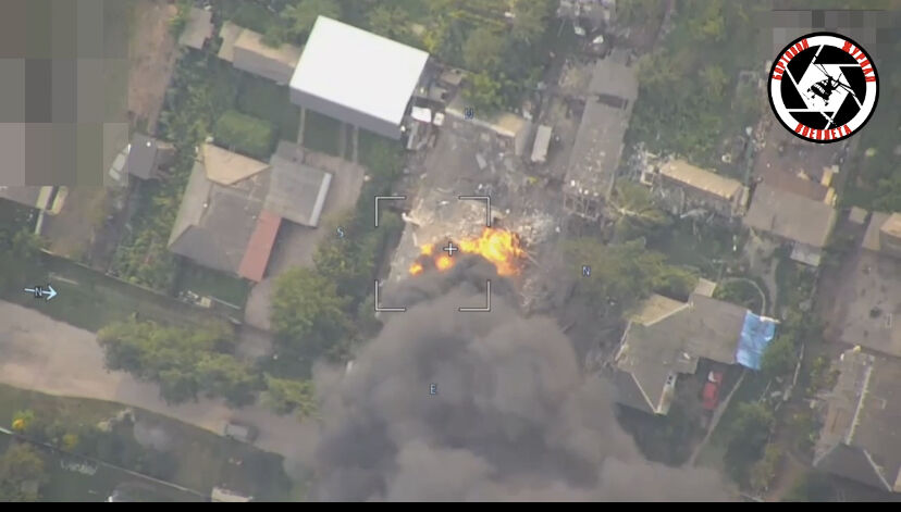 Aerial bombing of the Ukrainian Armed Forces in the village of Kruglyakovka on the Oskol river. About 15 km from the contact line -- Svatovo - Kupyansk Frontline