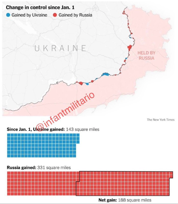 Theo The New York Times, Ukraine đã chiếm lại 250 km2 lãnh thổ từ tay Nga kể từ ngày 1/1/2023. Nga chiếm 550 km2… .