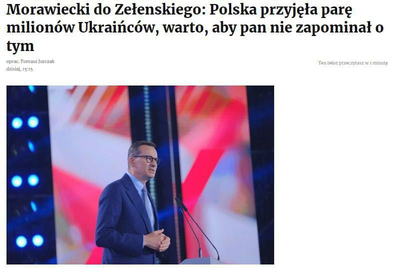 Thủ tướng Ba Lan Morawiecki kêu gọi Ukraine biết ơn vì Ba Lan đã che chở cho hàng triệu người Ukraine và không tin tưởng vào Đức - Dziennik Gazeta Prawna