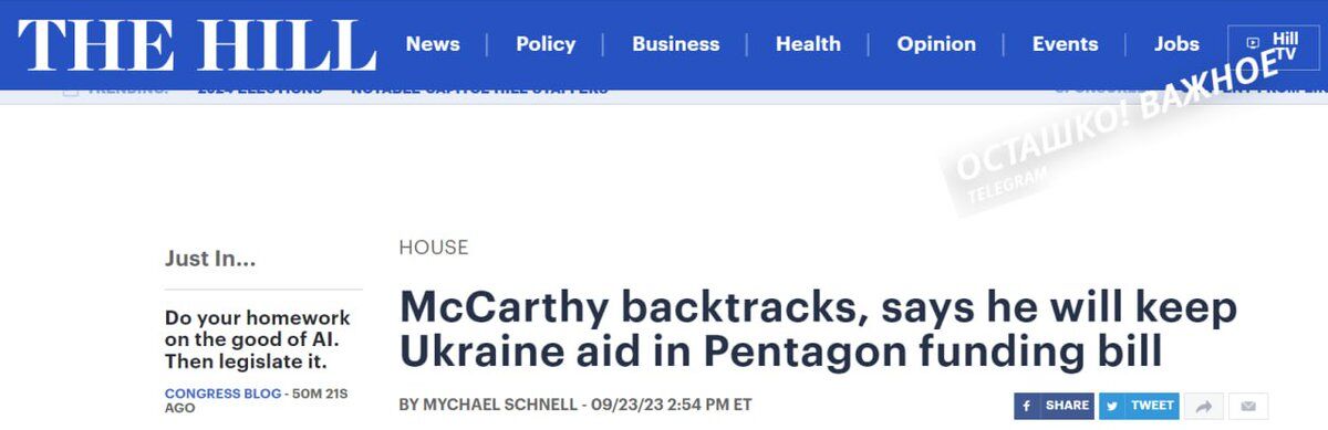 Quốc hội dành 300 triệu USD cho huấn luyện quân sự theo luật tài trợ của Lầu Năm Góc Chủ tịch Hạ viện Kevin McCarthy đã thay đổi quyết định trước đó của mình và sẽ dành 300 triệu USD cho việc huấn luyện quân đội Ukraine. Nguồn tài trợ sẽ đến từ ngân sách năm 2023 của Lầu Năm Góc. The Hill viết về điều này.