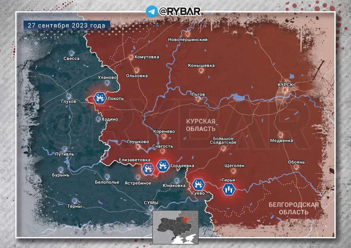 Trong suốt cả ngày, lực lượng Ukraine đã tiến hành các cuộc tấn công lớn vào biên giới khu vực Kursk. Tại làng Giryi, quận Belovsky, một máy bay không người lái của Ukraine đã thả đạn xuống một trong các doanh nghiệp, tòa nhà bị hư hại. Tại làng Lokot, quận Rylsky, hai tòa nhà dân cư bị hư hại do pháo kích. Ngoài ra, một phụ nữ bị thương và được hỗ trợ y tế. Tại quận Sudzhansky, các làng Guevo và Plekhovo bị tấn công, không có thiệt hại và không có thương vong. Người dân địa phương cũng báo cáo về việc pháo kích vào các làng Elizavetovka và Gordeevka, nhưng hiện tại không có thông tin chính thức.