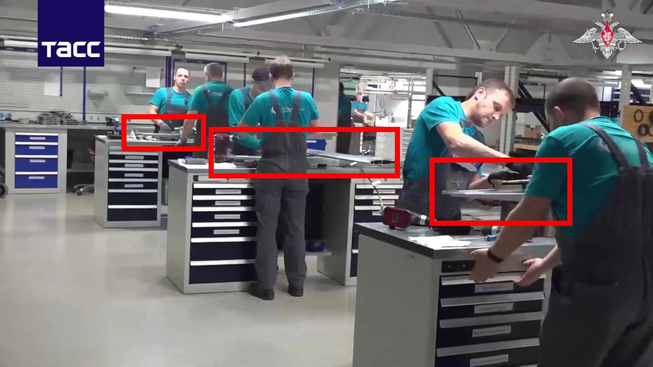 Dây chuyền lắp ráp bộ cánh cho bom lượn. Với số lượng lượt đã sử dụng mà chúng tôi đã thấy, có lẽ có khoảng 20 dây chuyền lắp ráp khác giống như dây chuyền này đang sản xuất những thứ này.