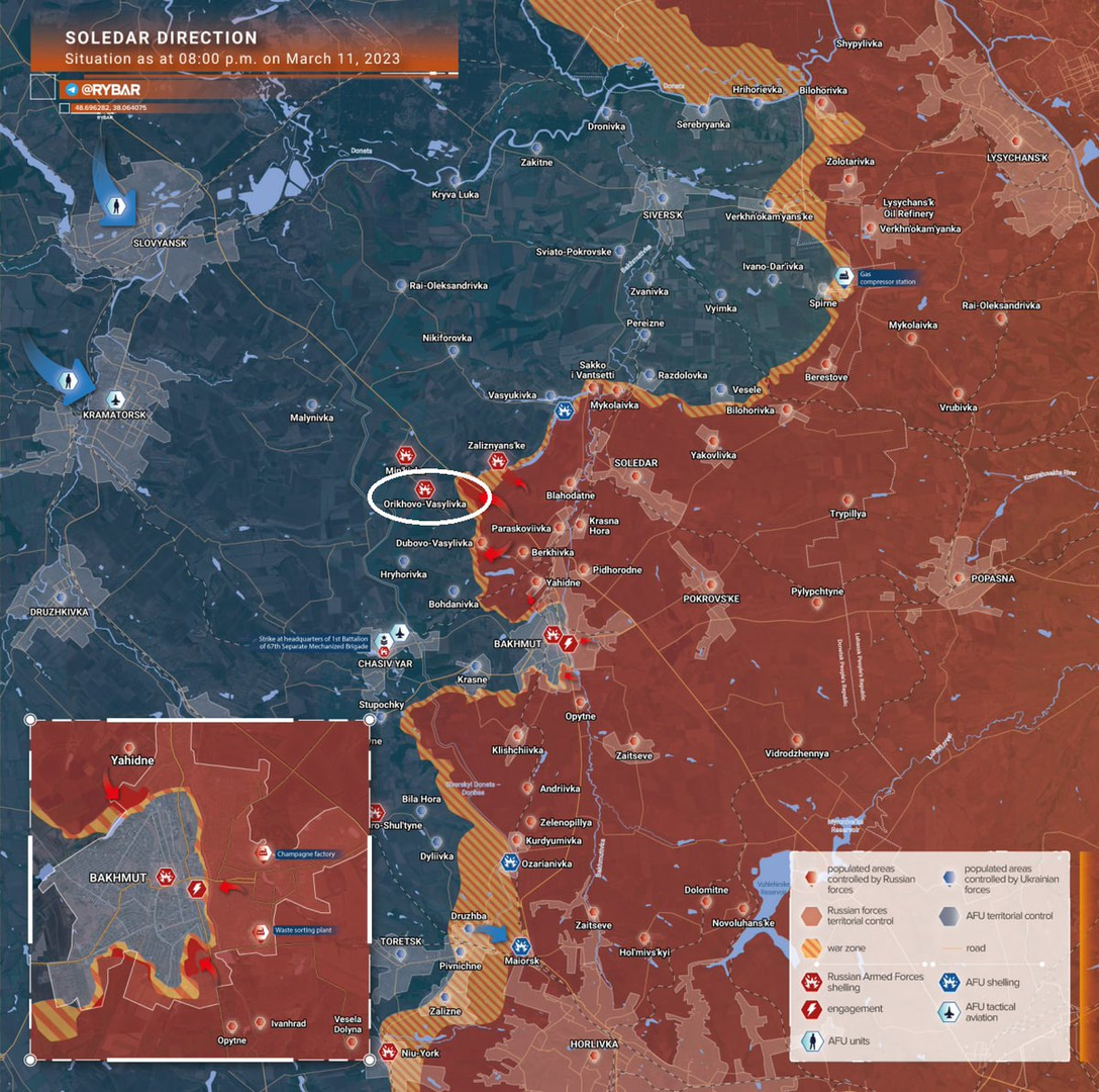 - Việc chiếm Orekhovo-Vasilevka (thực tế đã chiếm được) sẽ đe dọa tuyến phòng thủ thứ hai xây dựng từ mùa hè theo trục Slavic-Kramatorsk and Bakhmut-Soledar. Dẫn đến chính Seversk cũng bị đe dọa.