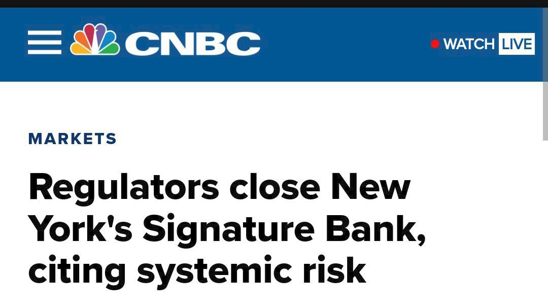 “Chúng tôi cũng đang công bố một ngoại lệ rủi ro hệ thống tương tự đối với Ngân hàng Chữ ký, New York, New York, đã bị cơ quan điều lệ nhà nước đóng cửa hôm nay,” Bộ Tài chính, Cục Dự trữ Liên bang và FDIC cho biết trong một tuyên bố chung vào tối Chủ nhật.
