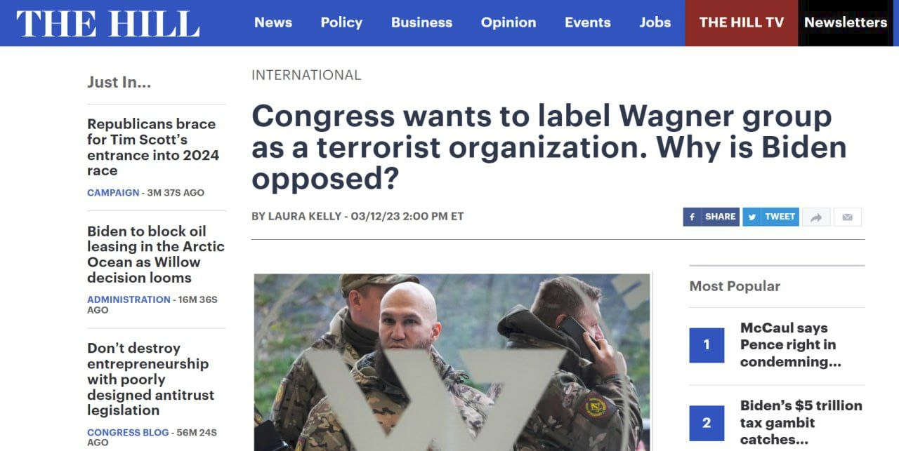 🇺🇸 Quốc hội Mỹ kêu gọi Nhà Trắng tuyên bố PMC Wagner là tổ chức khủng bố, nhưng Biden phản đối - The Hill