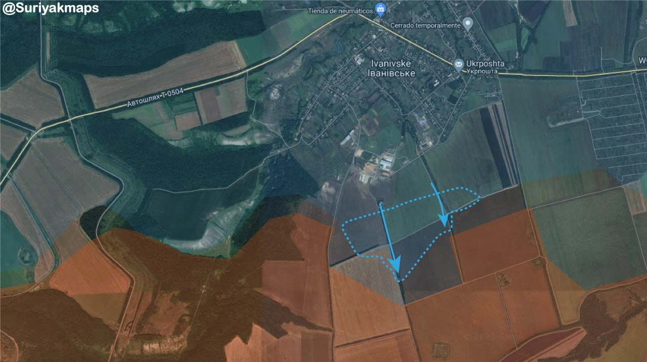 Tình hình phía nam thành phố Bakhmut: Quân đội Ukraine mở cuộc phản công ở phía nam Ivanivske/Іванівське & chiếm lại một số vị trí. Vài km về phía tây, Quân đội Nga đã tiến bộ nhỏ về phía đường Korsunskoho, nơi quân đội Ukraine đã đẩy lùi cuộc tấn công.