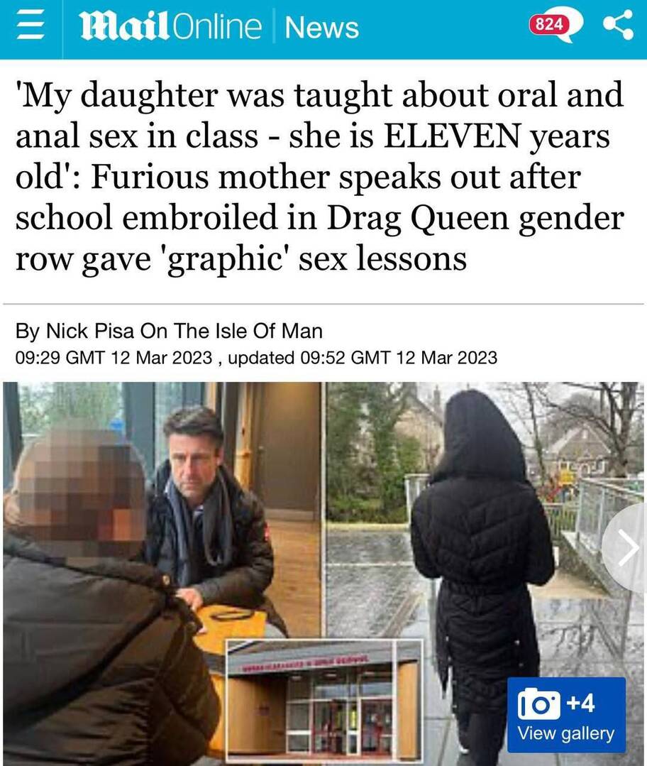 "Con gái tôi được dạy quan hệ tình dục bằng miệng và hậu môn trong lớp - và nó mới 11 tuổi", người mẹ tức giận nói về ngôi trường dạy các bài học về tình dục bằng hình ảnh.