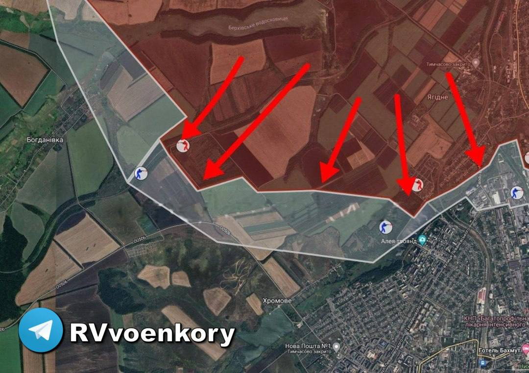 ▪️Vượt qua một khu vực rất kiên cố gần Khromovo và sau khi đánh bại các cố gắng phản công của Lực lượng vũ trang Ukraine, các chiến binh PMC quyết định tiến quân dọc theo đường đổ bộ trên đường cao tốc. Hiện tại có tiến bộ trên đường tiến quân, có những trận chiến nặng nề trong khu vực của tuyến đường cao tốc.