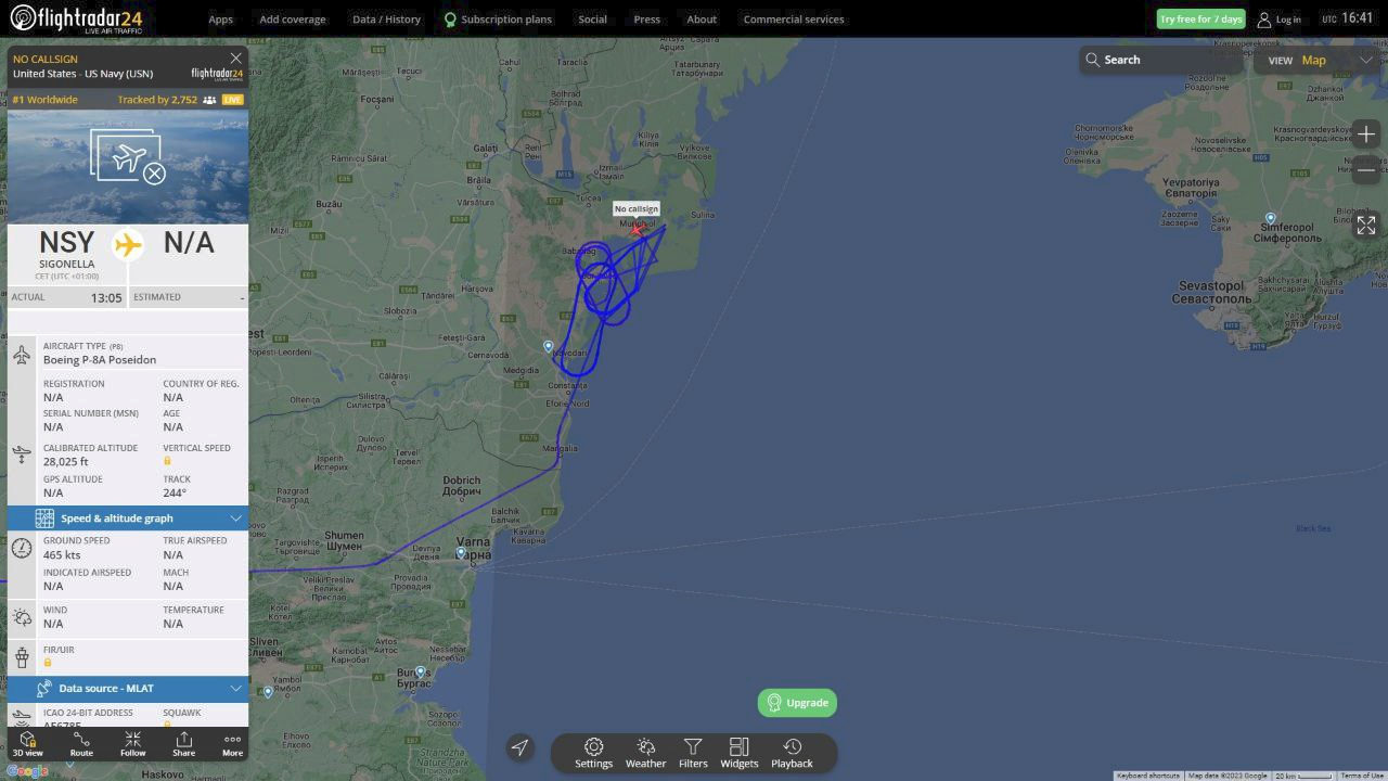 Máy bay chống ngầm P-8A Poseidon của Hải quân Mỹ hiện đang hoạt động ngoài khơi bờ biển Romania. Nó không được bao gồm trong khu vực Biển Đen.