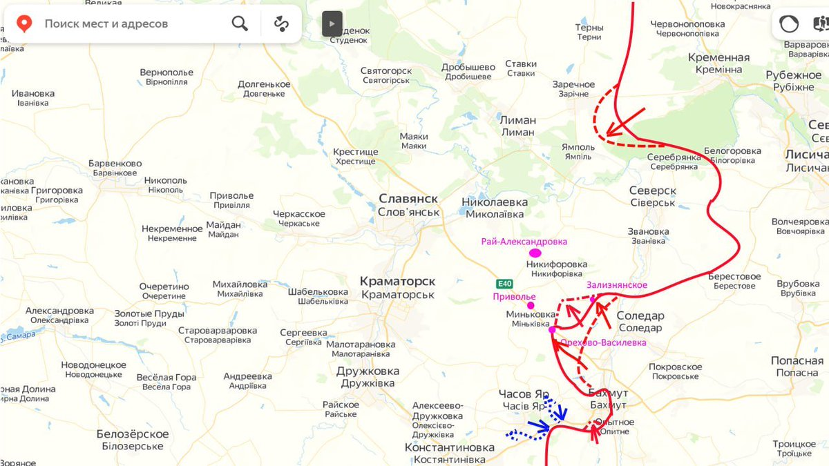 Nga đang đánh dọc theo cao tốc E-40, phía trên Seversk cũng có xu hướng ép xuống. Có khi các anh Ivan định luôc xong cái nồi hầm Bakhmut thì tạo tiếp cái cối xay thịt này để tiếp tục trích máu đối thủ. Cái này cũng góp phần nắn thẳng, thu hẹp chiến tuyến.