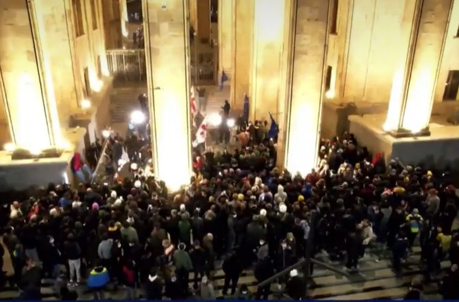 Người biểu tình ở Tbilisi đã tiến đến các bậc thang của tòa nhà quốc hội. Tình hình đang mất kiểm soát.