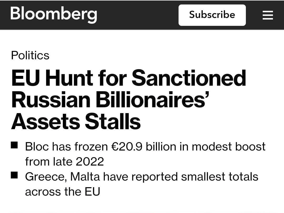 ▪️Bloc đã đóng băng 20,9 tỷ euro trong khoản tăng khiêm tốn từ cuối năm 2022