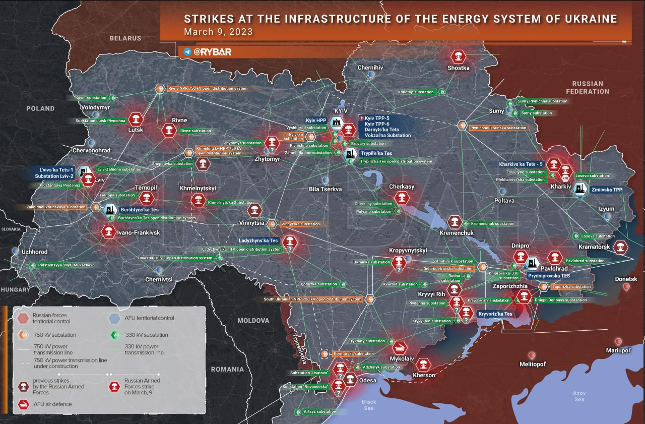 Để gây ra thiệt hại không thể khắc phục đối với hệ thống năng lượng của Ukraine, cần phải tấn công vào các thiết bị điện (máy biến áp đơn vị) của các trạm cơ sở - nhà máy điện hạt nhân và nhà máy thủy điện, tiếp tục đánh sập các nhà máy nhiệt điện vẫn đang hoạt động - chủ yếu là Zmievskaya, Trypilska và Burshtynska.