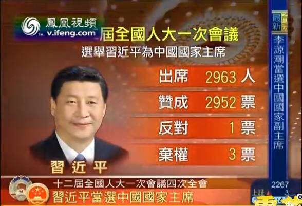 Nhiệm kỳ đầu tiên (2013- 2018) của ông Tập diễn ra không mấy suôn sẻ với 2952 phiếu thuận, 1 phiếu chống, 3 phiếu trắng, 7 người không tham gia bỏ phiếu.