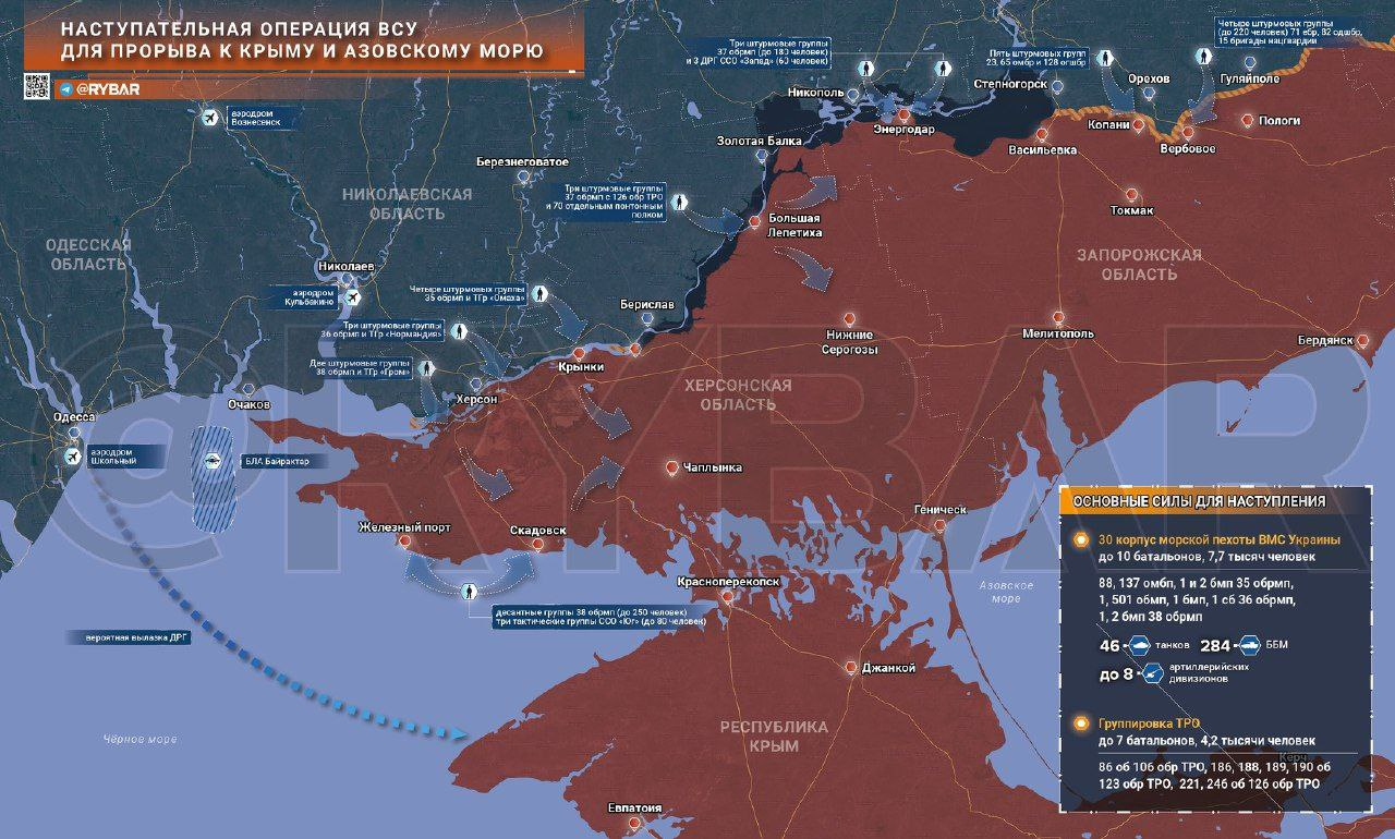 ❗️Các lực lượng vũ trang Ukraine đang xem xét sáu hướng tấn công của một số nhóm tấn công. Đòn chính sẽ được tung ra tại tuyến giữa Krynki - Novaya Kakhovka và Cảng Sắt. Phần còn lại là cần thiết để đánh lạc hướng sự chú ý và chốt hạ Lực lượng Vũ trang ĐPQ (bao gồm cả khu vực Zaporozhye của mặt trận).