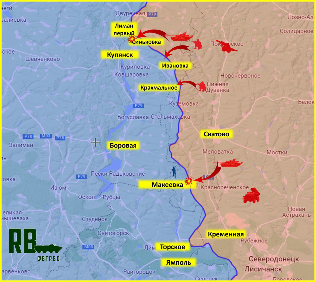 ▪️Quân của chúng tôi đã thực hiện các hoạt động tấn công ở phía tây và tây bắc Svatovo, cũng như ở phía đông bắc vùng Kharkov. ▪️Như phóng viên quân sự A. Kots đã đưa tin, một số điểm phòng thủ đã bị đánh chiếm ở phía tây Svatovo và 2-3 công sự khác ở khu vực Sinkovka và Petropavlovka. ▪️Địch báo cáo cuộc tiến công của bộ binh chúng tôi với sự yểm trợ của xe tăng và các trận chiến trong khu vực Makeevka. Ngoài ra, quân đội Nga còn tiến lên và giành được chỗ đứng ở phía tây làng Orlyanka dọc theo vành đai rừng. ▪️Người đứng đầu Lực lượng Lục quân Ukraine cho biết: "Tình hình ở hướng Kupyansk và Liman đã trở nên tồi tệ hơn đáng kể trong những ngày gần đây. Nga đã tiến hành các hoạt động tấn công tích cực ở khu vực Makeevka và sau đó là hướng Kupyansk. Giao tranh ác liệt đang diễn ra." Mục tiêu chính của người Nga là đánh bại nhóm Lực lượng vũ trang Ukraine, bao vây Kupyansk và tiếp cận tuyến sông Oskol. Mỗi ngày kẻ thù thực hiện hàng chục cuộc tấn công với các nhóm tấn công được hỗ trợ bởi xe bọc thép và tiến hành súng cối và pháo binh dày đặc bắn vào vị trí của chúng tôi."