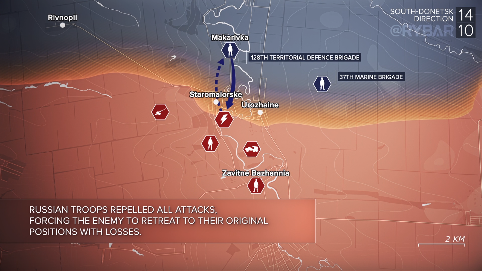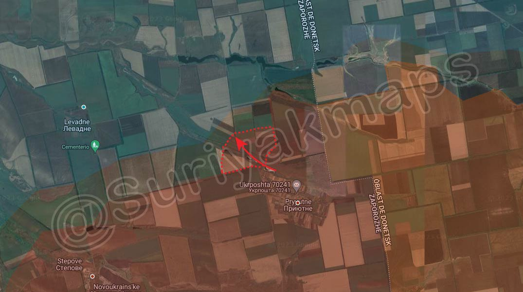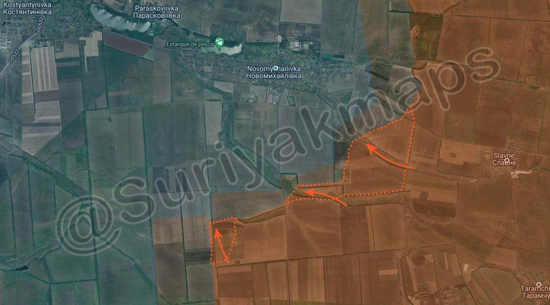 Tình hình phía nam thành phố Donetsk: các cuộc giao tranh gần đây xác nhận Quân đội Nga cũng tiến về Novomykhaidivka/Новомихайлівка từ trục Slavne/Славне, cuộc tấn công đã bắt đầu bốn ngày trước.