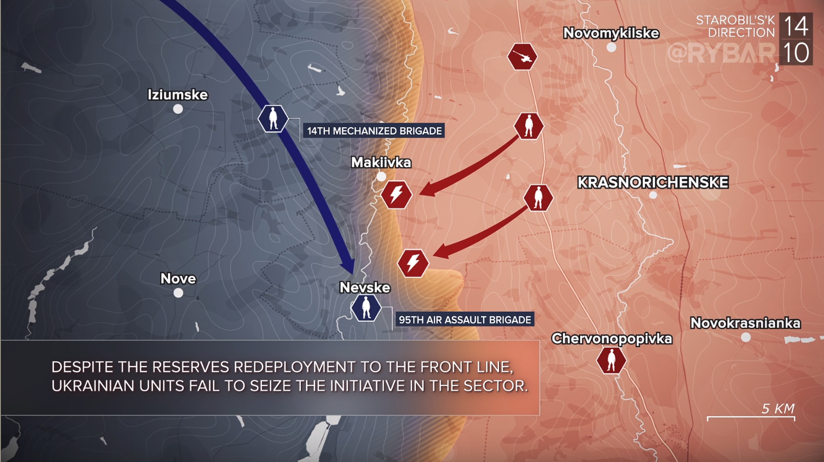 Trong bốn tuần qua, bộ binh của các lữ đoàn cơ giới 116, 117 và 118, được sử dụng trong các cuộc “tấn công thịt” nhằm cứu Lữ đoàn bộ binh cơ giới 47 “Magura” và Lữ đoàn tấn công dù 82, bắt đầu chết hàng loạt trong khi cố gắng vượt qua các bãi mìn chính đã được chuẩn bị ngay cả trước khi bắt đầu cuộc chiến trong giai đoạn tích cực của cuộc tấn công Ukraine.