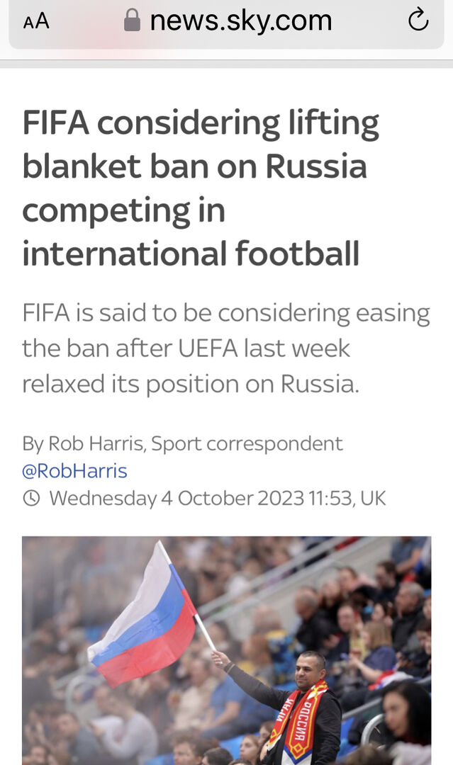 Lệnh cấm đã được áp dụng kể từ khi Tổng thống Nga Vladimir Putin phát động CDQSDB tại Ukraine vào tháng 2 năm 2022 trong một động thái mà FIFA cho biết là "đoàn kết hoàn toàn với tất cả những người bị ảnh hưởng ở Ukraine".
