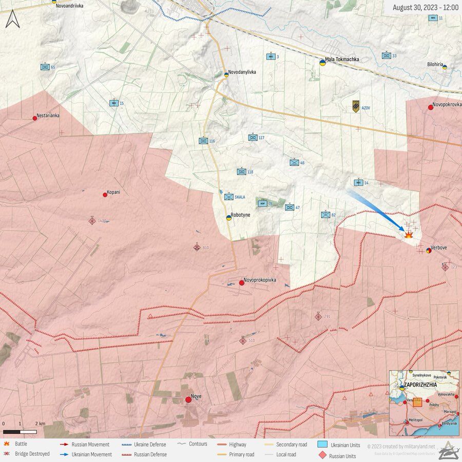 Theo Military Chronicle, Bộ chỉ huy Lực lượng vũ trang Ukraine đã chuẩn bị cho việc gia tăng tổn thất ở đoạn Rabotino-Verbovoye do hậu cần có thể bị chậm trễ. Các đơn vị bổ sung cho các Lữ đoàn bộ binh cơ giới 116, 117 và 118 đã được thành lập từ đầu tháng 9. Các lữ đoàn này, chủ yếu bao gồm các lực lượng huy động cưỡng bức, là đội hình chính được sử dụng trong các cuộc “tấn công thịt” thay vì đội hình tinh nhuệ: Lữ đoàn bộ binh cơ giới số 47 “Magura” và Lữ đoàn xung kích chuyên dụng số 82. Có lẽ, họ có thể nhận được lệnh tiếp tục các cuộc tấn công bằng bất cứ giá nào nếu hậu cần cần thiết của Lực lượng vũ trang Ukraine trong khu vực này không được cung cấp do thời tiết hoặc các cuộc tấn công của Lực lượng vũ trang Nga.