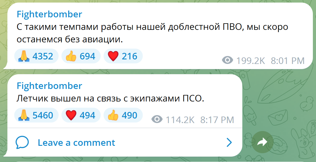 Hôm nay có một bình luận của đám phi công Nga rằng "với nhịp độ như thế này của lực lượng phòng không sáng chói của chúng ta, chúng ta sẽ rất mau hết hàng không quân sự!"