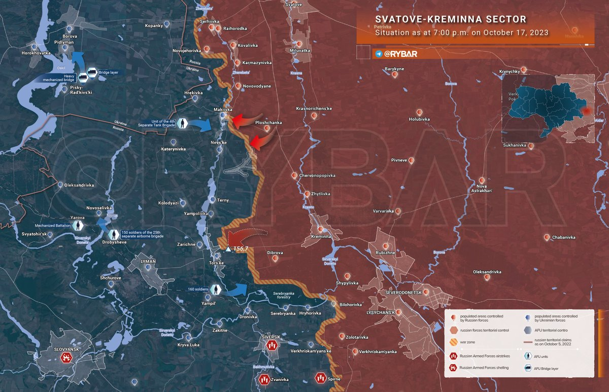 ▪️ Trong khi lực lượng Nga đang tiến hành các cuộc tấn công thường xuyên vào các điểm vượt sông Oskil, AFU đã điều đơn vị cầu phai đến Borova.