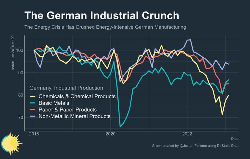 🔥 Sản xuất công nghiệp ở Đức đã giảm 1,4% trong tháng 9 so với tháng trước, tháng giảm thứ tư liên tiếp, theo số liệu của chính phủ công bố hôm thứ Ba - Một mức giảm mạnh hơn dự đoán của các nhà phân tích.