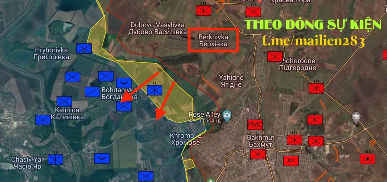 Hôm qua, quân Nga, với sự hỗ trợ của pháo binh, đã tiến được khoảng 1,5 km, chiếm quyền kiểm soát một đoạn đường sắt giữa các khu định cư Yagodnoye và Bogdanovka.