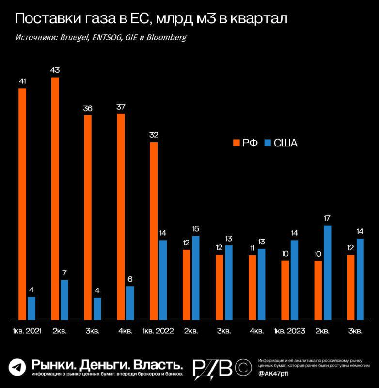 Ngay trong quý 2 năm 2022 (gần như ngay sau khi bắt đầu SVO!), Hoa Kỳ đã vượt qua Nga về nguồn cung cấp khí đốt cho châu Âu.