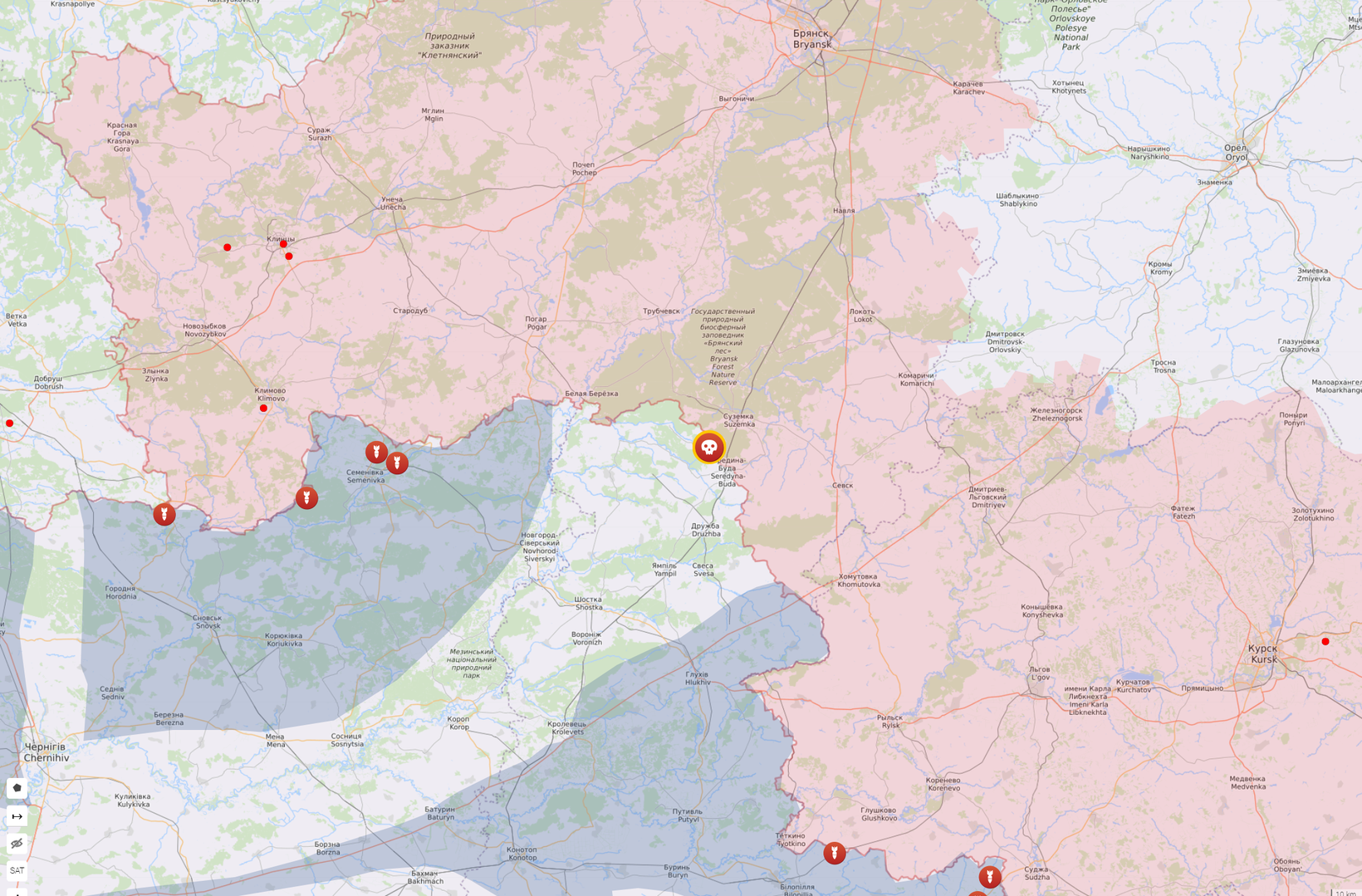 Cùng lúc đó, các phương tiện truyền thông đưa tin tại làng biên giới Street, Vùng Bryansk, có những kẻ không rõ danh tính đã bắn vào chiếc UAZ Patriot, khiến phó cục hậu cần, một trung tá của cơ quan biên giới FSB, thiệt mạng. .