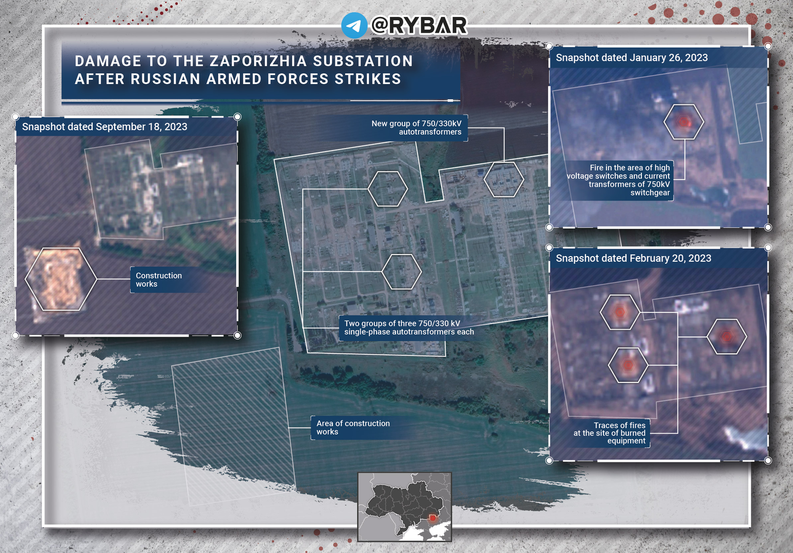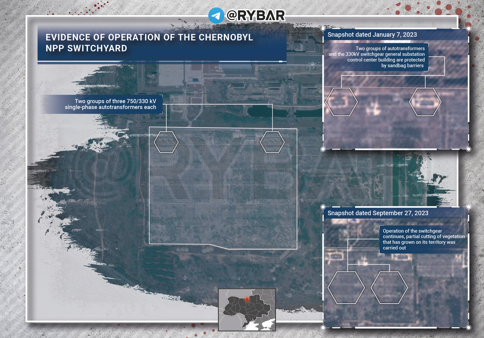 Cần lưu ý công việc hoán đảo thiết bị quy mô lớn diễn ra gần các trạm biến áp ở miền trung và phía tây Ukraine - những khoang thiết bị bị bỏ trống, nhưng không có công việc nào khác ngoài việc hoán chuyển thiết bị đi chỗ khác được thực hiện trong đó. Có lẽ chúng ta đang phải đối mặt với nỗ lực chuyển thiết bị 330 kV xuống các công trình ngầm hoặc tươn gtựbquá trình này. Điều này được hỗ trợ bởi thực tế là không có công việc cụ thể nào được quan sát.