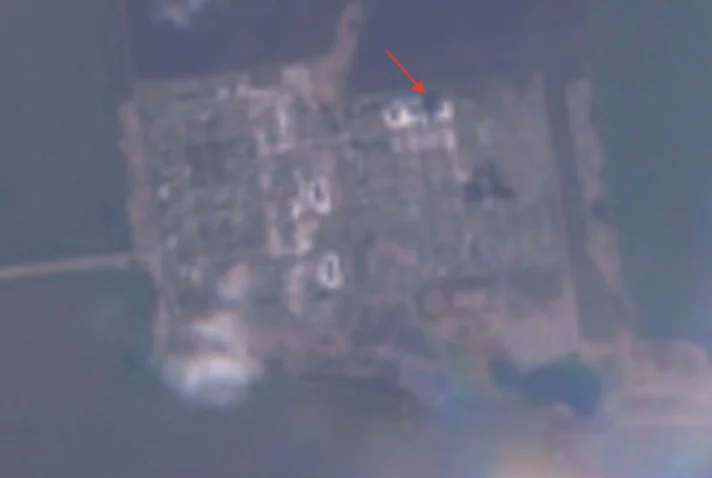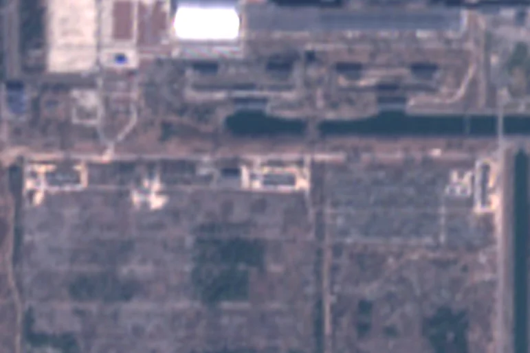 Bức ảnh chụp ngày 24/1/2023 cho thấy tòa nhà trung tâm điều khiển bị hư hại và có dấu vết cháy cạnh máy biến áp tự ngẫu dự phòng. Tuy nhiên, tòa nhà “máy nén” có vẻ không bị hư hại nặng. Các đường viền của máy biến áp tự ngẫu rất khó phân biệt, điều này có thể cho thấy chúng đã được đóng kín hoàn toàn bằng hàng rào bảo vệ hoặc đã được tháo dỡ. Có thể nhìn thấy dấu vết của đám cháy ở khu vực đặt máy biến áp tự ngẫu pha “A”.