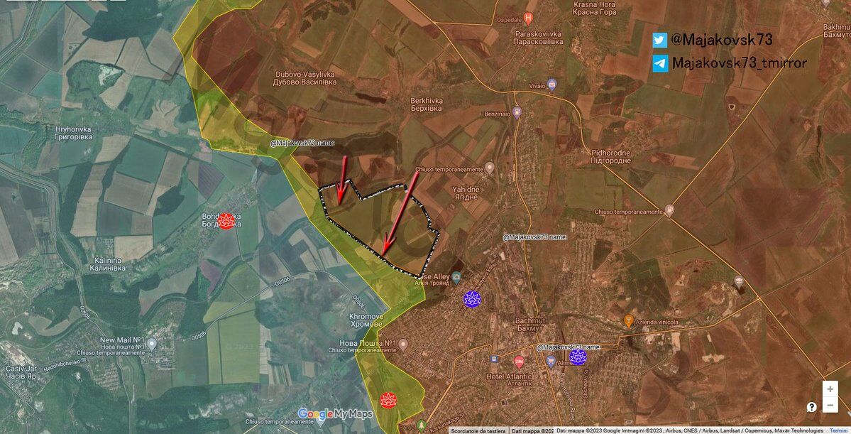 Tình hình phía bắc Bakhmut: Quân đội Nga đã tiến bộ đáng kể về phía nam Hồ chứa Berhovske và Yahidne/Ягідне, do đó tiến tới con đường giữa Khromove/Хромове và Chasiv Yar/Часів Яр. Điều này xảy ra sau cuộc rút lui quan trọng trong những ngày trước của Quân đội Ukraine về các vị trí phòng thủ tốt hơn. Hơn nữa, điều quan trọng cần lưu ý là Quân đội Nga đã chiếm lại phần lớn lãnh thổ bị mất trong cuộc phản công của Ukraine vào tháng 6 năm ngoái. Sẽ rất thú vị để xem liệu người Nga có thể khai thác được thế tiến công trong những ngày tới hay không...