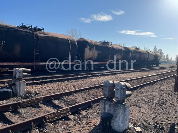 Một đoàn tàu chở nhiên liệu của Nga bị hư hại do cuộc tấn công của Ukraine có thể được nhìn thấy trong hình ảnh vệ tinh mới về Donetsk.