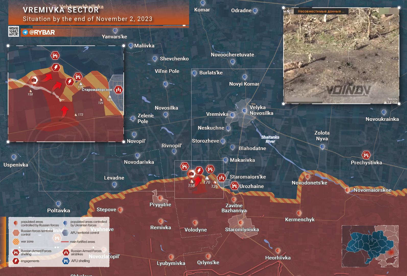 ❗️🇷🇺🇺🇦 Khu vực Vremevsky: cuộc phản công của trung đoàn 394 của Lực lượng Vũ trang Nga - Tình hình cuối ngày 2/11/2023