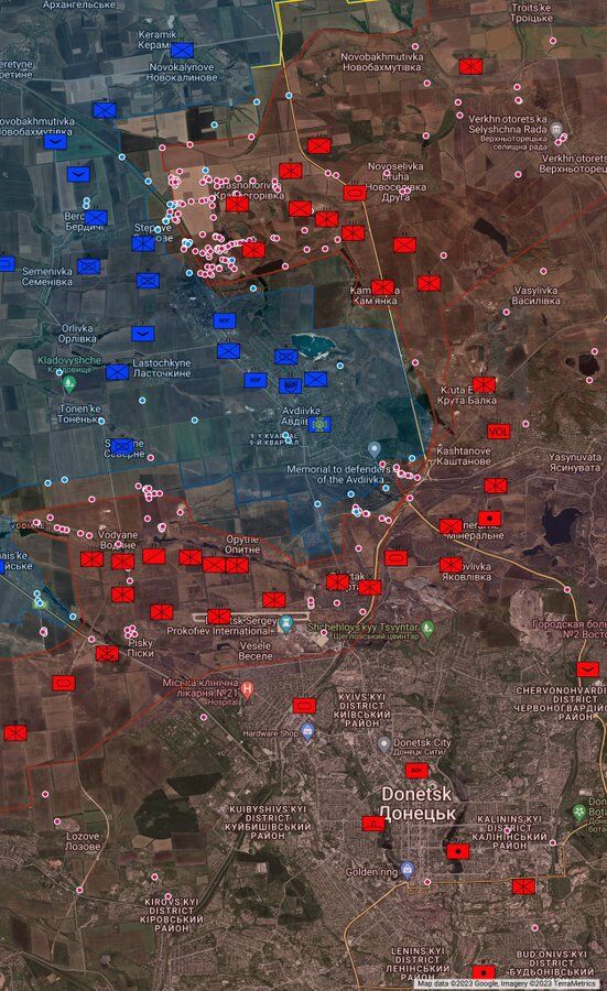 2. Ở sườn phía Bắc quân đội Nga (RF) tập trung tiêu diệt nhân lực, trang bị của lực lượng vũ trang Ukraine (VFU). Pháo binh và máy bay tên lửa đã tấn công AKHZ và khu vực làng Berdychi. Các cuộc tấn công lớn cũng được thực hiện vào các vành đai rừng trong khu vực định cư Novokalinovo, các đồn điền cùng lính VFU ở đó đã được được cày xới một cách tự nhiên. Ở phía bắc Krasnohorivka, RF đang tiến sâu vào khu vực nơi có hai tuyến đường sắt giao nhau (theo đúng nghĩa đen) và dù bị phản công liên tục mạnh mẽ, VFU vẫn chưa rời khỏi khu vực đó. Nhưng những bức tường làm từ bộ binh của VFU sẽ sớm bị phá vỡ trước áp lực liên tục của RF. Nhìn chung, chiến thuật vẫn được giữ nguyên, nỗ lực chính là nhằm tối đa hóa việc tiêu diệt quân Ukraine.