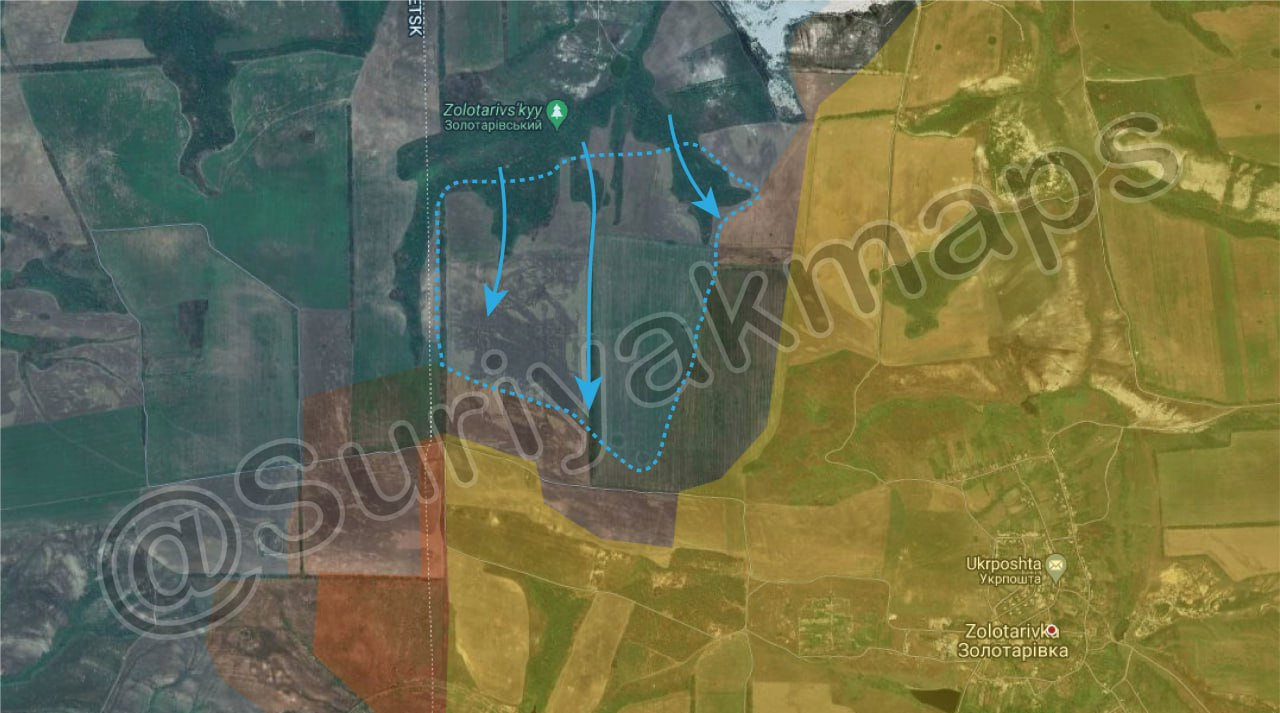 Tình hình mặt trận Seversk: Quân đội Ukraine tiến thêm bước tiến mới về phía nam Bilohorivka/Билогоривка, tiến gần hơn đến thị trấn Zolotarivka/Золотаривка.