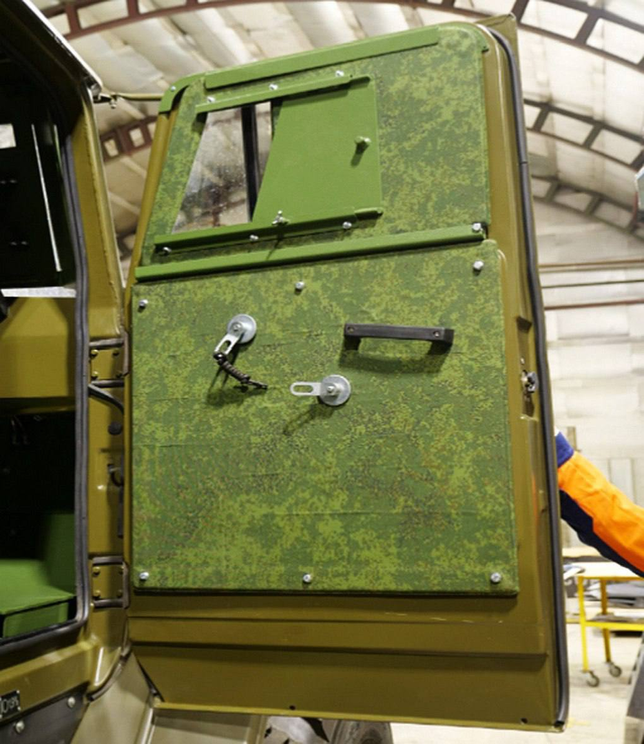 Một bộ áo giáp phân mảnh hạng nhẹ có thể được lắp đặt trên các xe KamAZ, Ural và UAZ Patriot. Quá trình lắp đặt không yêu cầu điều kiện đặc biệt hoặc đào tạo đặc biệt, các công cụ duy nhất cần có là tuốc nơ vít và cờ lê.