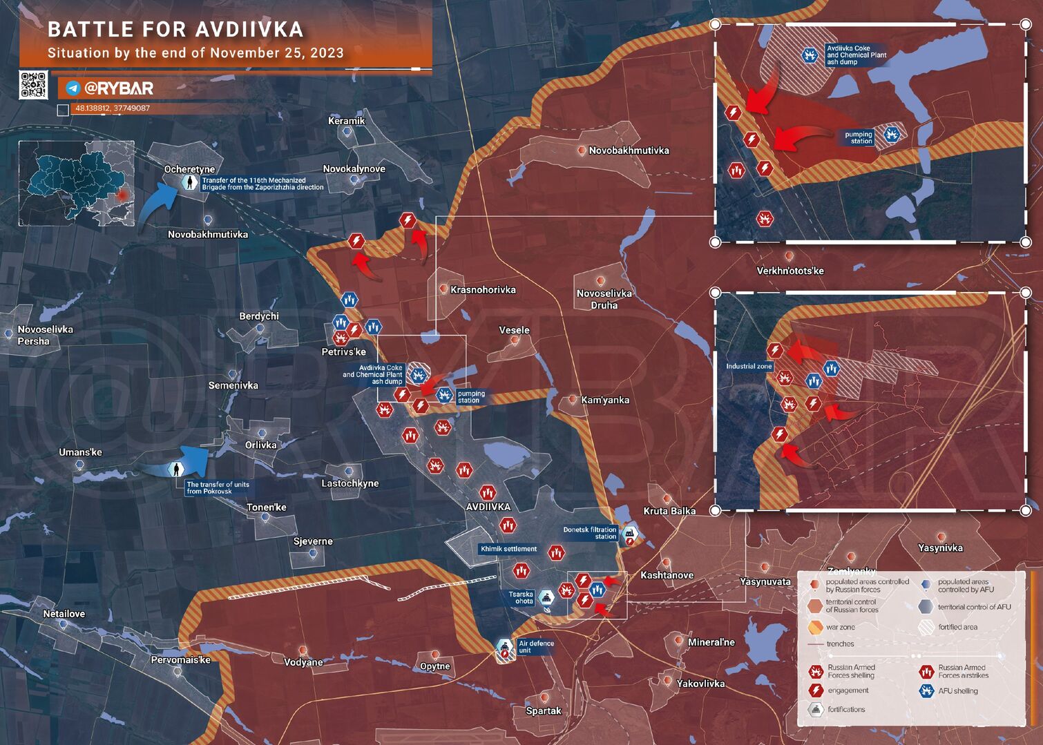 ❗️ 🇷🇺🇺🇦 Trận Avdievka: Khu công nghiệp Yasinovataya-2 (Tình hình cuối ngày 25/11/2023)