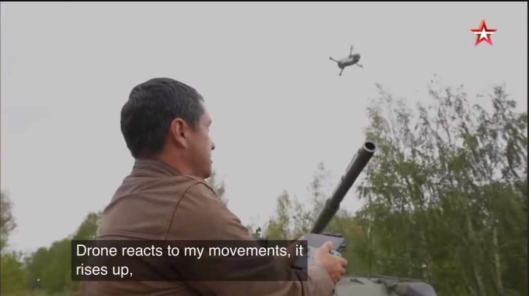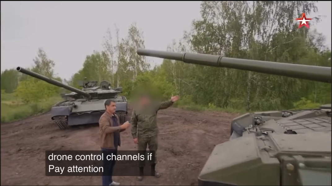 Sử dụng thử thiết bị chống máy bay không người lái cho một đơn vị của Nga trên thực địa. Thiết bị gây nhiễu này đã được trình diễn trên mẫu T-80BV 2023 cách đây hai tháng, theo đó người dẫn chương trình người Nga đã chỉ ra cách anh ta không thể vận hành máy bay không người lái trong phạm vi khoảng 5 mét đối với xe tăng được trang bị thiết bị này.