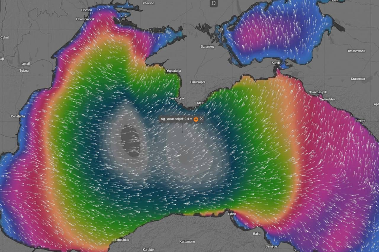 Quả bão vừa rồi cũng to: sóng ở Biển Đen cao đến 9 mét, tốc độ gió 40 m/s (144 km/h). ifta nói bão to nhất trong 100 năm gần đây.