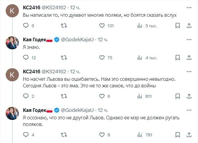▪️Nhà hoạt động người Ba Lan tin rằng chính phủ của cô đang làm sai khi khiển trách cô, trong khi “thị trưởng Lvov, người tôn thờ Bandera, lại mắng mỏ người Ba Lan”.