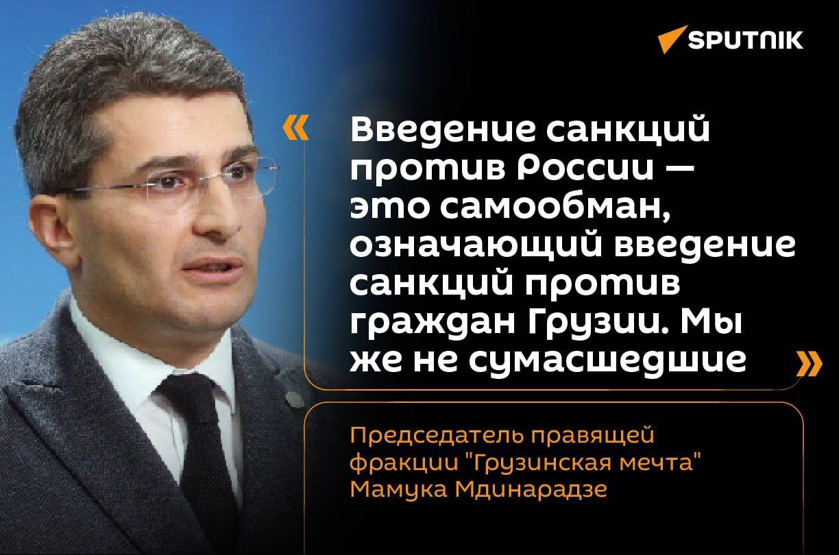 📌 Hôm nay, chủ tịch phe cầm quyền, Mamuka Mdinaradze, nói rằng "Gruzia sẽ không áp đặt các biện pháp trừng phạt đối với Nga, vì điều này được so sánh với việc tự sát đối với cả nước" .