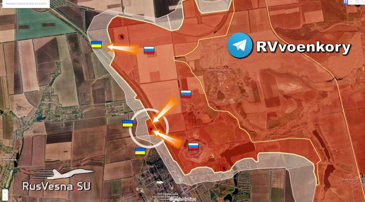 ➡️ Phía bắc Nhà máy hóa chất và than cốc Avdiivka, lực lượng Nga tấn công dọc theo dải rừng ở hướng tây, chiếm một số vị trí của Ukraine.