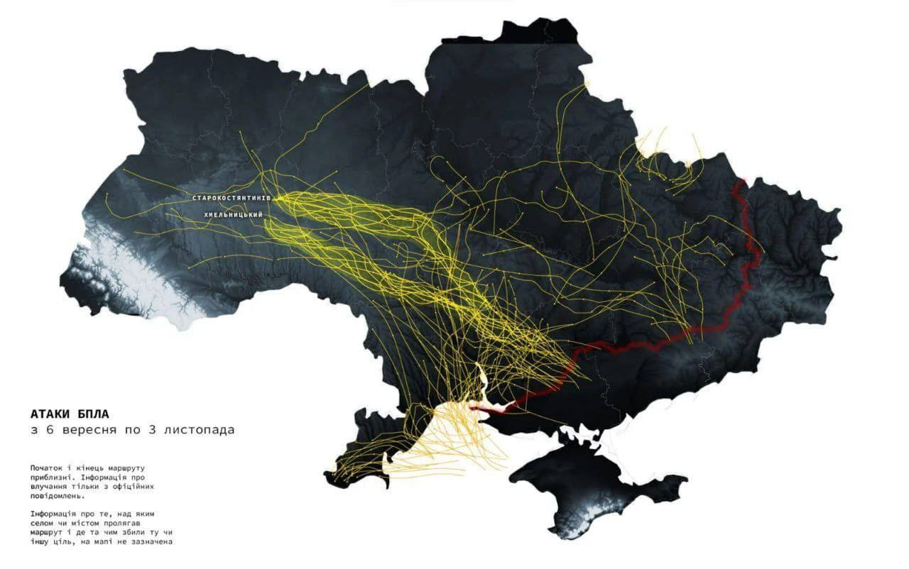 ▪️Máy bay không người lái thường tấn công dọc theo lòng sông, đường giao thông và biên giới khu vực. Qua sông, bạn có thể bay thấp và không bị radar phòng không chú ý, còn phía trên đường, tiếng ồn của máy bay không người lái tấn công hòa với tiếng ồn của ô tô. ▪️Một xu hướng khác - hầu hết máy bay không người lái đều bay từ Crimea. ▪️Một trong những mục tiêu quan trọng nhất của máy bay không người lái là Starokonstantinov ở vùng Khmelnitsky, nơi có sân bay quân sự, cũng như các cảng của vùng Odessa.