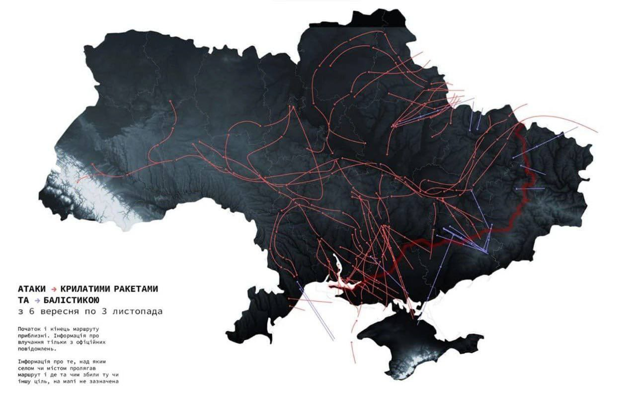 Ukraine công bố bản đồ chỉ đường đi của tên lửa Nga và Shahed trong các cuộc tấn công hàng ngày vào Ukraine.